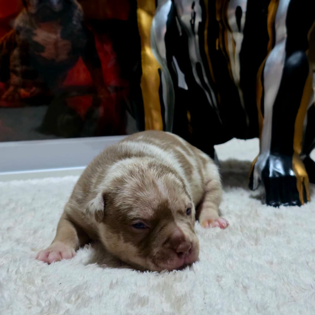 This Chocolate Tri Merle male represents the direction of our breeding program — structure, temperament, and quality combined. He will play a key role in strengthening our kennel’s future foundation.